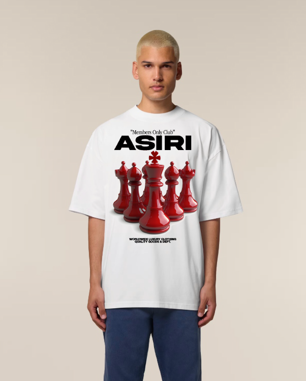 Elevate your streetwear with the ASIRI “Members Only Club” Tee, featuring a bold 3D red chess-king graphic symbolizing power and exclusivity. Made from premium heavyweight cotton with a relaxed fit, it blends luxury comfort with a statement design — perfect for standout everyday style.
